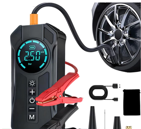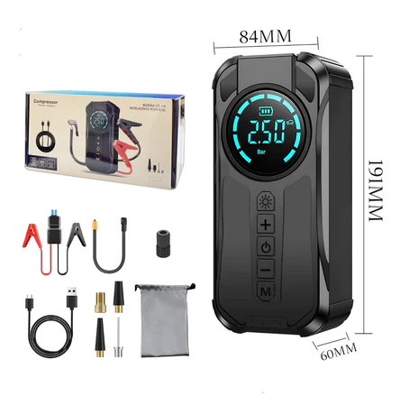 A bomba de ar portátil multifunção 4 em 1 é um acessório indispensável para quem busca praticidade, segurança e autonomia no dia a dia e em viagens. Funciona como compressor inflator, calibrador de pneus, bomba de ar portátil e power bank, tudo em um único dispositivo compacto.