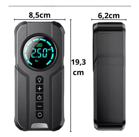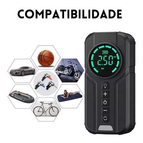 Função 4 em 1: compressor, inflador, calibrador e power bank